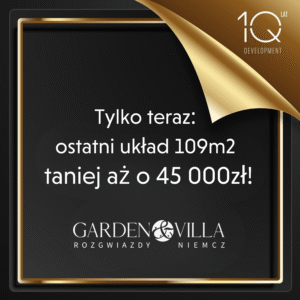 ♦ Od 10 października, tylko przez najbliższy miesiąc rabat 45 000 zł na ostatni układ 109m2 na osiedlu Garden&Villa w Niemczu.
